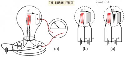 انتشار الکترون ها از یک رشته گرم شده متصل به دو الکترود كه در یک لوله تخلیه شده از هوا قرار گرفته است . اين کشف چون توسط توماس ادیسون در سال 1883صورت گرفته به نام او ثبت گرديده.