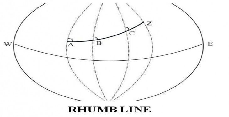 -یک خط فرضی در سطح زمین که تمام نصف النهارها را با یک زاویه قطع کرده و به عنوان روش استاندارد ترسیم مسیر کشتی یا هواپیما بر روی نقشه استفاده می شود.