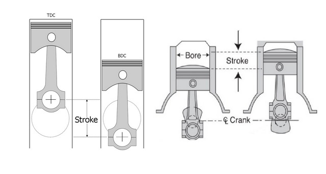 در موتور های پیستونی (رفت و برگشتی) ، مسیری که پیستون از نقطه مرگ پایین (BDC) تا نقطه مرگ بالا (TDC) طی می کند.