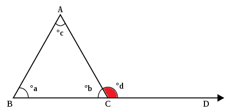 زاویه بین یکی از اضلاع یک چند ضلعی و امتداد ضلع مجاور آن.