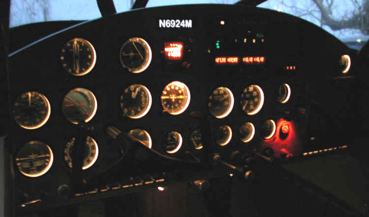 Small shielded lights positioned over the top corners of an instrument on an aircraft instrument panel. The lights illuminate the dials of the instrument, but they do not shine in the eyes of the pilot.