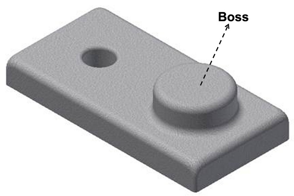 An enlarged area in a casting or machined part. a boss provides additional material to strengthen the part where holes are drilled for mounting or attaching parts.