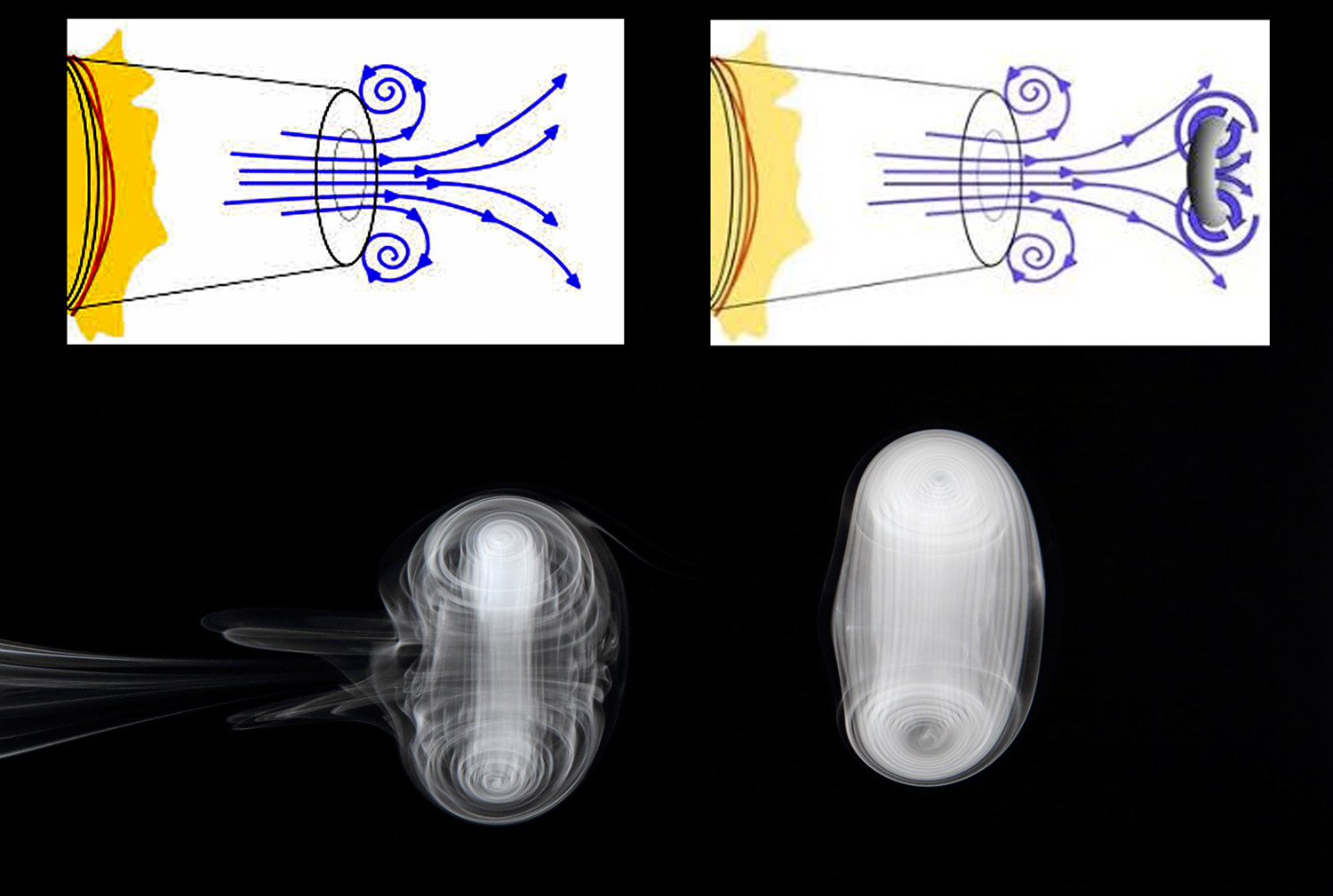 It's also called a vortex ring; is a coil-shaped vortex in a fluid (like air); that is, an area where the fluid mostly spins around an imaginary axis line with a shape of closed loop. The dominant flow in a vortex ring is annular shaped. or more precisely poloidal (doughnut-shaped).