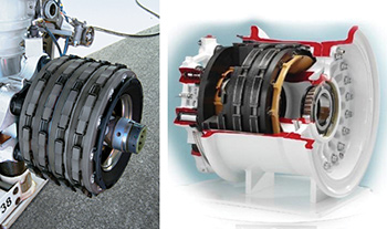 1-A device for slowing or stopping a moving vehicle, typically by applying pressure to the wheels.