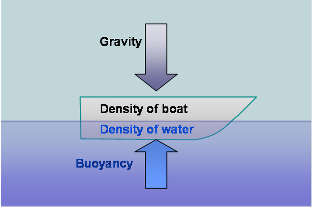 The uplifting force produced on an object when it is placed in a fluid. If a block of wood is placed in a container of water, the wood will displace some of the water, and the water on the outside of the block will push against it. The buoyancy, or the force with which the water pushes on the block, is the same as the weight of the water displaced by the block. When the block floats, it displaces, or takes the place of, its own weight of water.