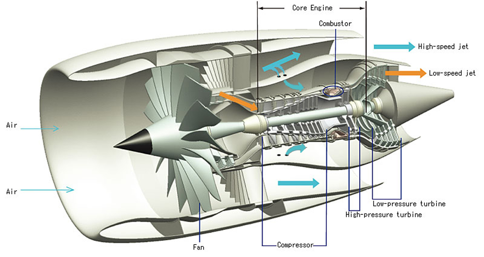 موتور دو راهه ، موتور جتی که هوای کمپرسور یا فن آن به دو قسمت تقسیم شده قسمتی برای سوختن در محفظه احتراق و قسمتی برای خنک کاری و ایجاد نیروی رانش از موتور خارج می شود