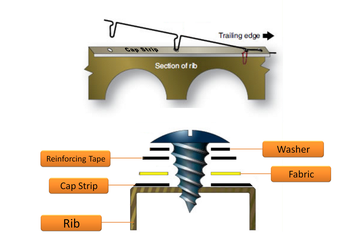 نوار پوششی سرتاسری روی لبه های دنده عرضی بال (rib) برای استحکام بخشیدن به آن و همچنین سهولت اتصال روکش