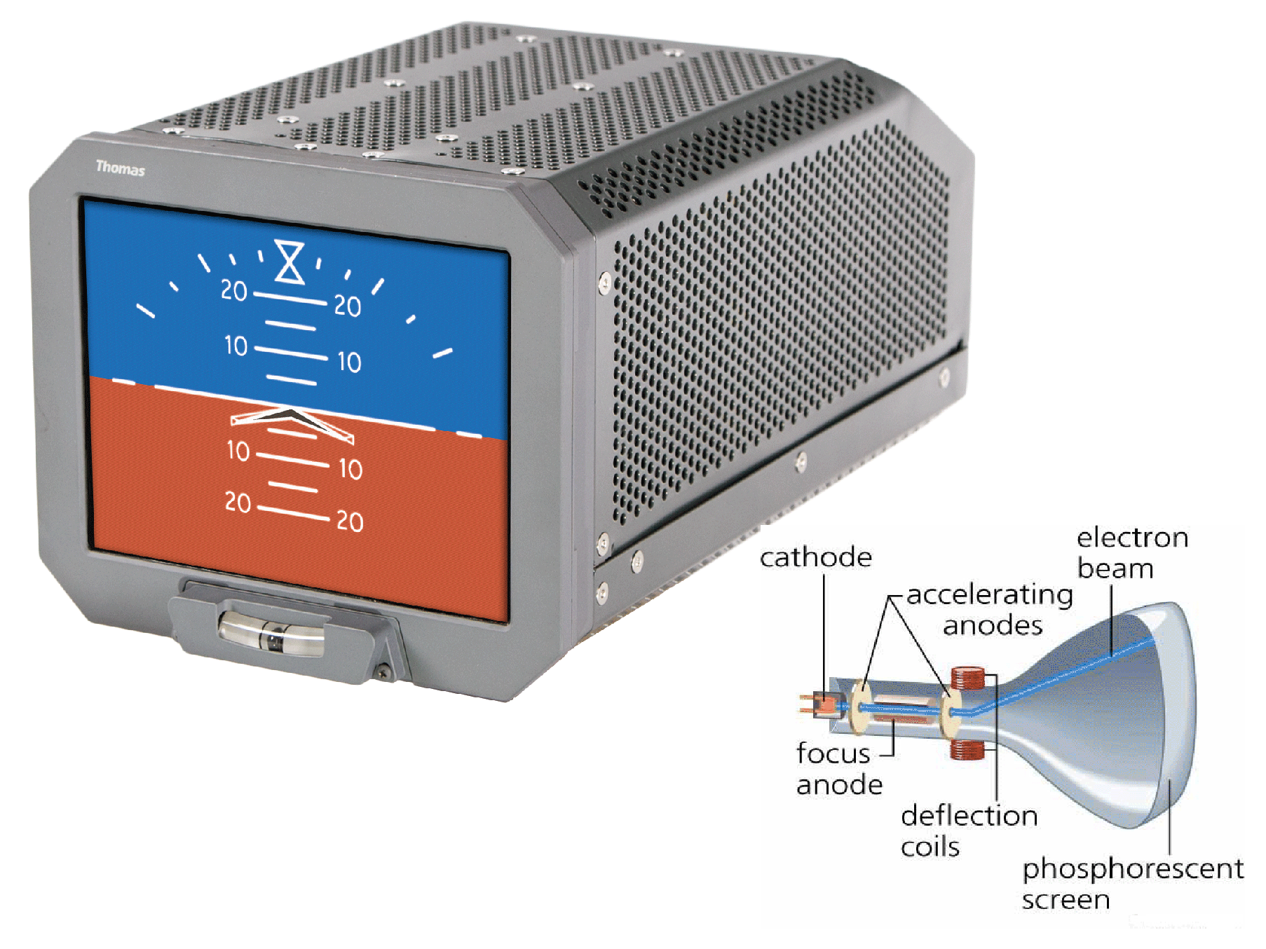 A high-vacuum tube in which cathode rays produce a luminous image on a fluorescent screen, used chiefly in televisions and computer terminals.