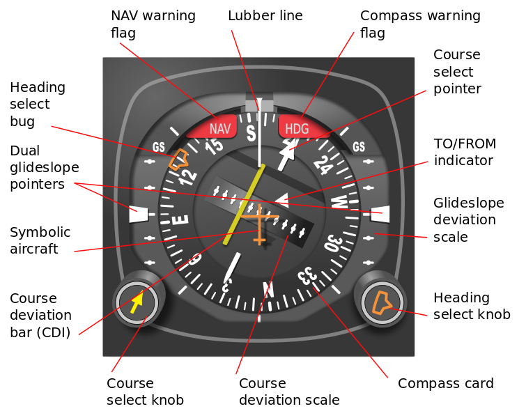 An indicator used with vor, loran, or gps navigation systems to indicate the direction and relative amount of deviation from the desired course. cdis are often called left-right indicators.