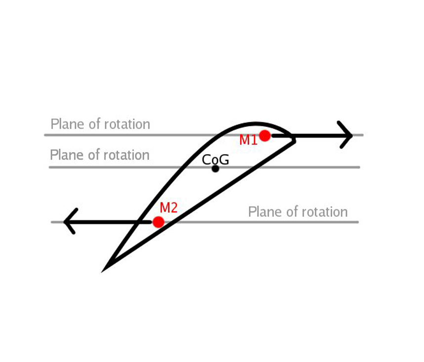 گشتاور پیچشی دور از مرکز ،نیروی گریز از مرکزی که در تیغه های گردان (تیغه توربین، کمپرسور ، و ملخ) باعث ایجاد گشتاور پیچشی و درنتیجه کاهش زاویه تیغه میشود