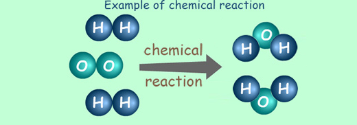 A change in the chemical nature (the chemical characteristics) of elements when they unite to form a chemical compound. Hydrogen is a lighter-than-air gas, and oxygen is also a gas. But when two atoms of hydrogen unite with one atom of oxygen, one molecule of water (H2O), a liquid, is formed. The compound water has different chemical characteristics from those of either of the elements oxygen or hydrogen. When hydrogen and oxygen combine to form water, a chemical reaction takes place.