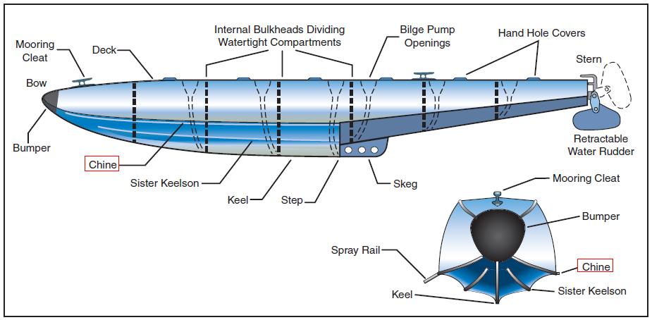 A longitudinal member of a seaplane hull or float that forms the joint between the bottom and the side of the structure.