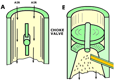 A valve in the carburettor of a petrol engine that is used to reduce the amount of air in the fuel mixture when the engine is started